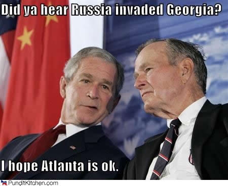 So that seems to be the point of it. Part of Georgia wanted to leave. Georgia said no pretty hard. Russia said, “Pardon me sir, I think we are in charge here” by bombing the shit out of them. I haven’t seen casualty totals so I’ll refrain from making too many jokes too soon.