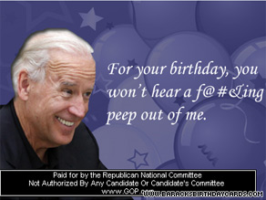 The new site, baracksbirthdaycards.com, hosts 11 digital birthday cards from which users can choose. All of the cards are mock greetings from various political or governmental figures to the president.