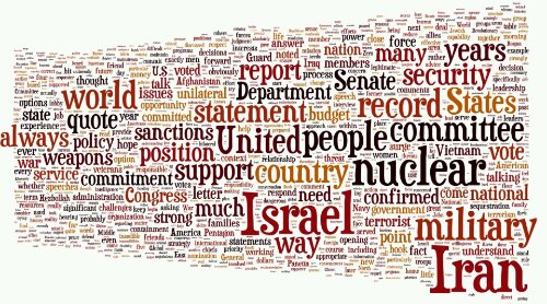 Hagel’s Hearing for Israeli Defense Minister…in Word Cloud Form