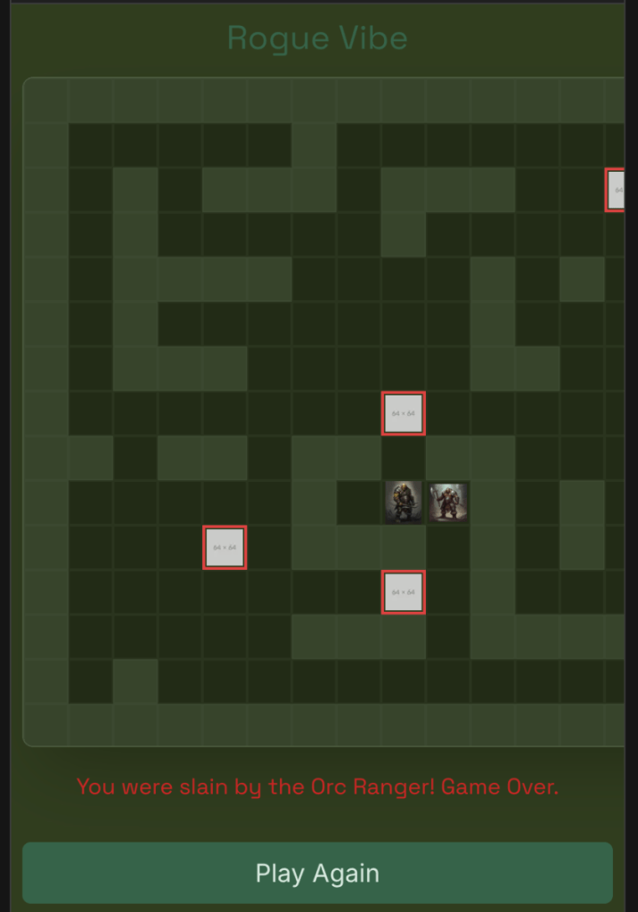 divthat wraps theDungeonGridand other central elements currently hasmd:max-w-xl. TheDungeonGriditself isDUNGEON_WIDTH * TILE_SIZE(which is20 * 32 = 640px).xlis36rem(576px). This means theDungeonGrid(640px) is wider than itsmax-w-xlcontainer (576px), causing an overflow. - I’ll change